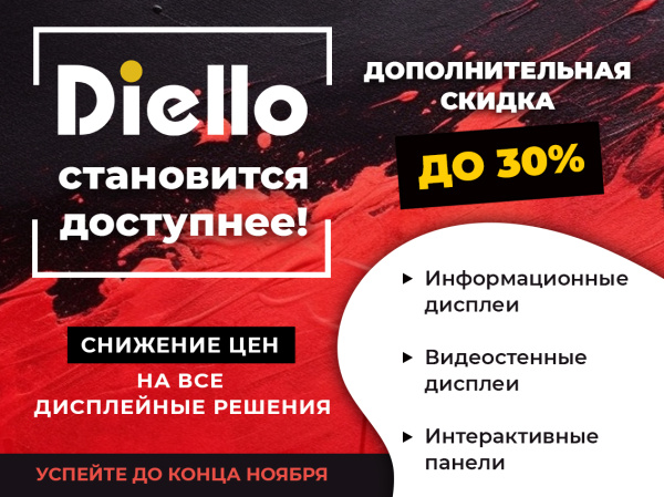 Мы сделали решения для визуализации еще доступнее и объявляем о снижении цен на весь ассортимент дисплеев Diello.